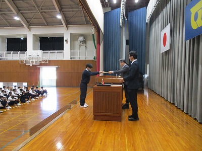 10月の全校集会と表彰伝達式を行いました。