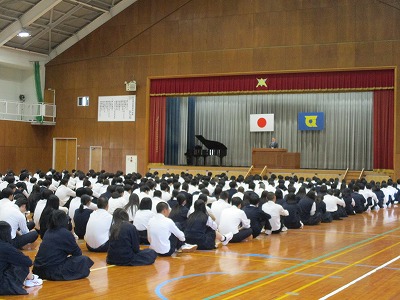 校長先生の訓話では、表彰の激励とともに、秋を「学びと活動の季節」と位置づけ、体育祭をはじめとした行事や仲間とのつながりを大切にしてほしいと、生徒たちに励ましの言葉が送られました。