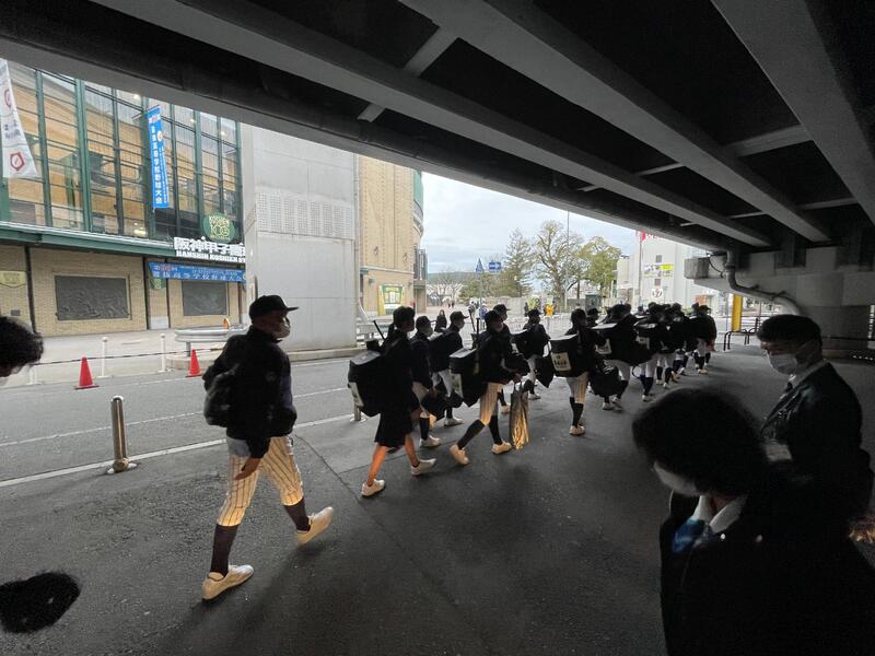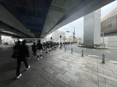 部活動小雨が降る中ですが、2回戦 熊本国府との戦いです。今、バスを降りて出陣して行きました。