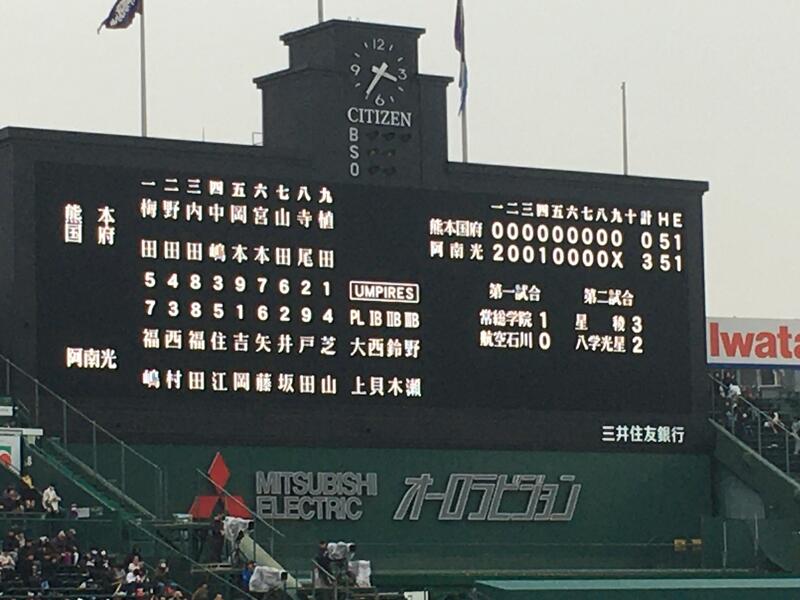 5回終了で、尽誠5-0阿南光。今日は打ち込まれてますが、後半戦に期待しています!