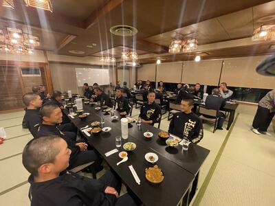 公式練習の後、宿舎近くの雨天練習場をお借りしてバッティング練習を行いました。