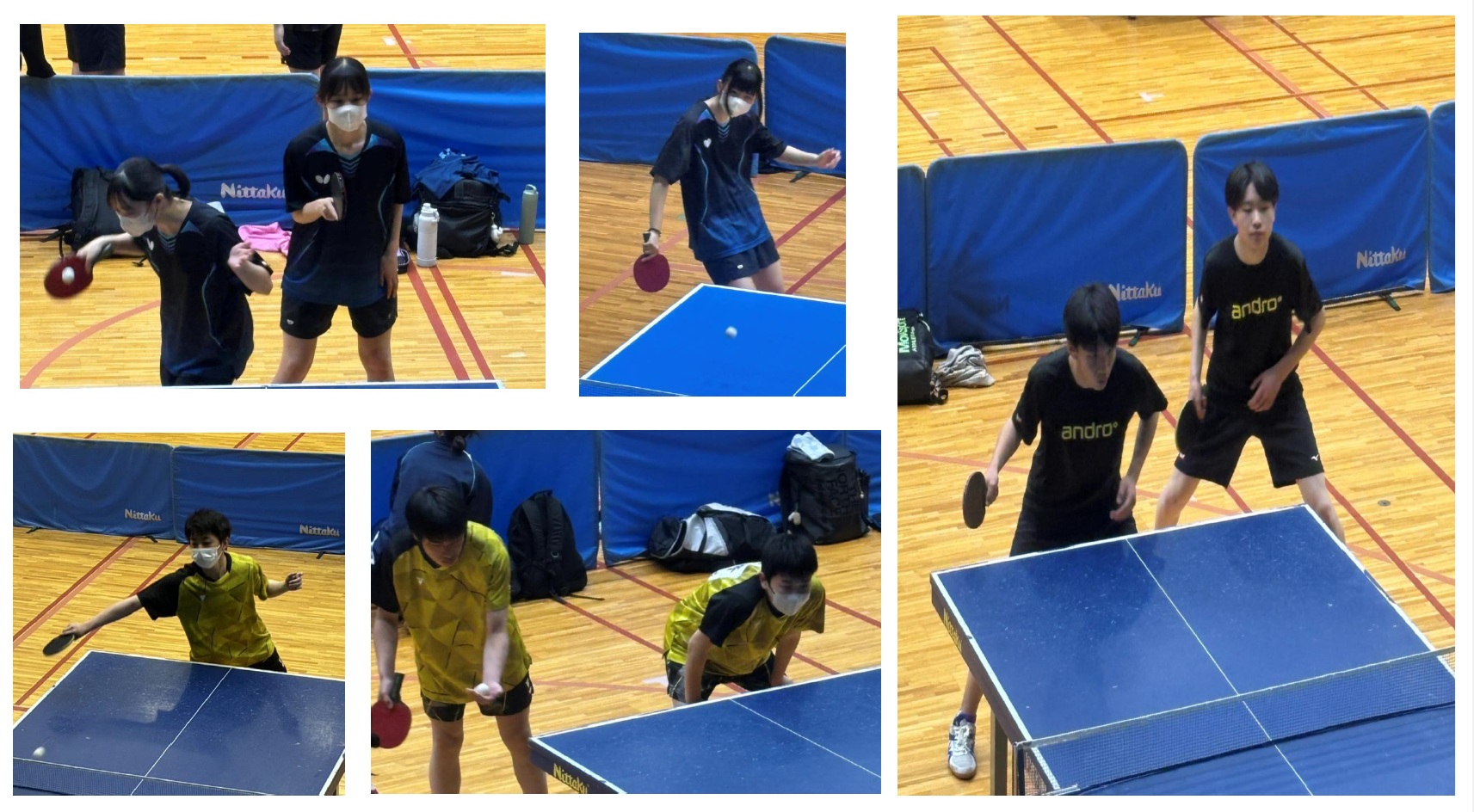 現在、卓球部は、1年次13名(内10名男子、3名女子)、2年次男子3名の計16名で活動をしています。基本的に、2時間程度でランニング・基礎練習・応用練習・模擬戦・課題練習に分けて練習しています。