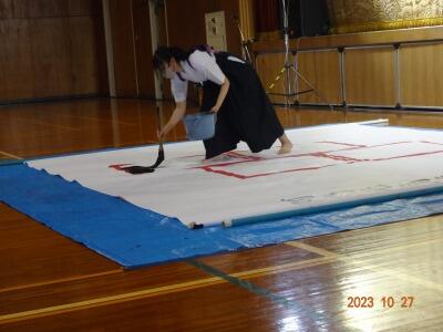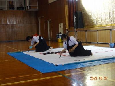 力強い作品へと変化しました。本番も本校書道部員が手伝います。