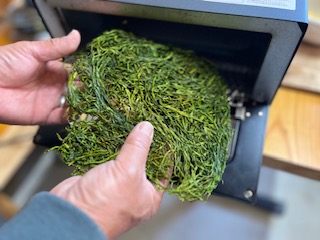 旬は一月下旬頃で長さが50センチ程度育ったカヤモノリを岩から摘み取り、天日干していく。