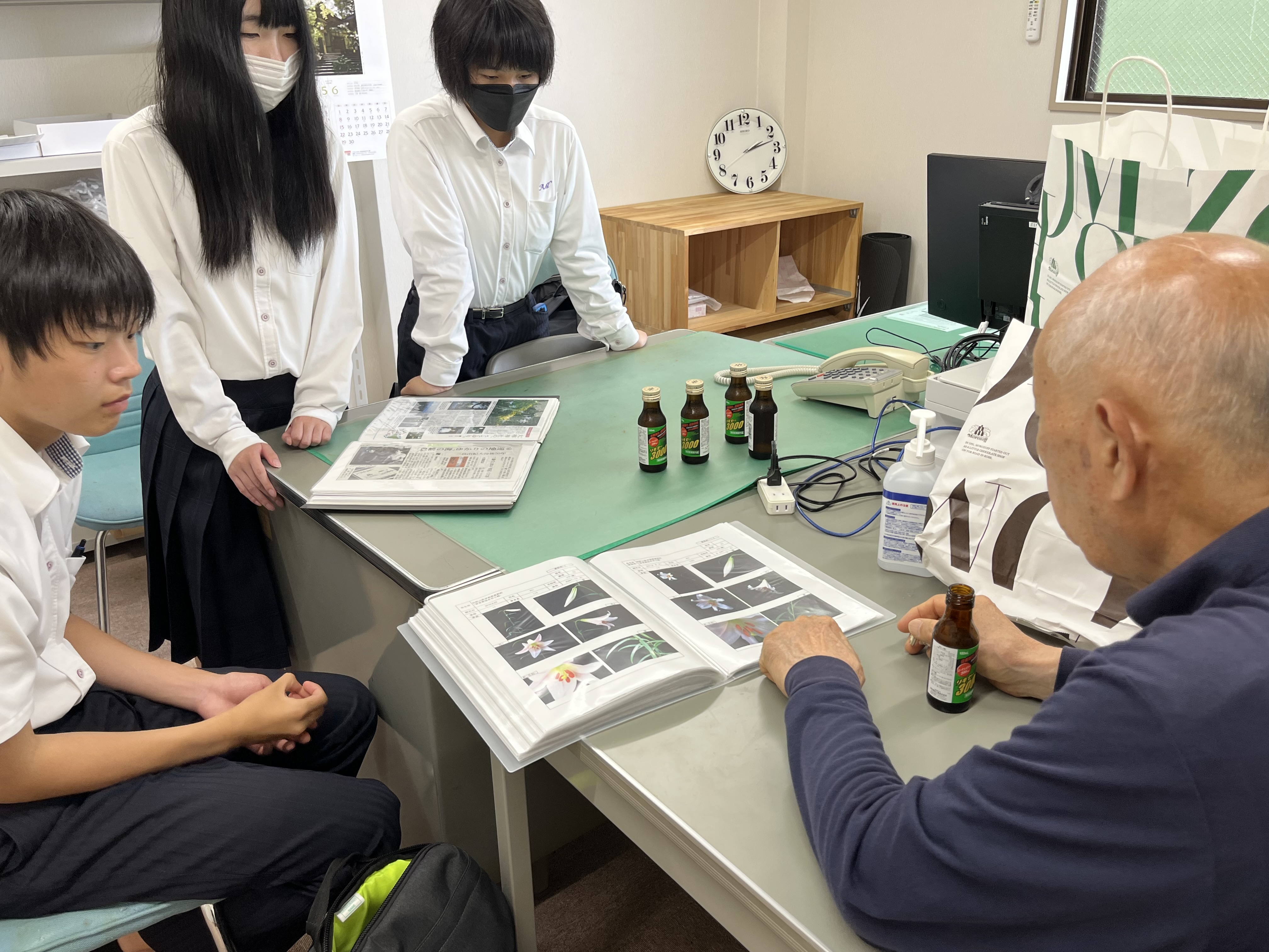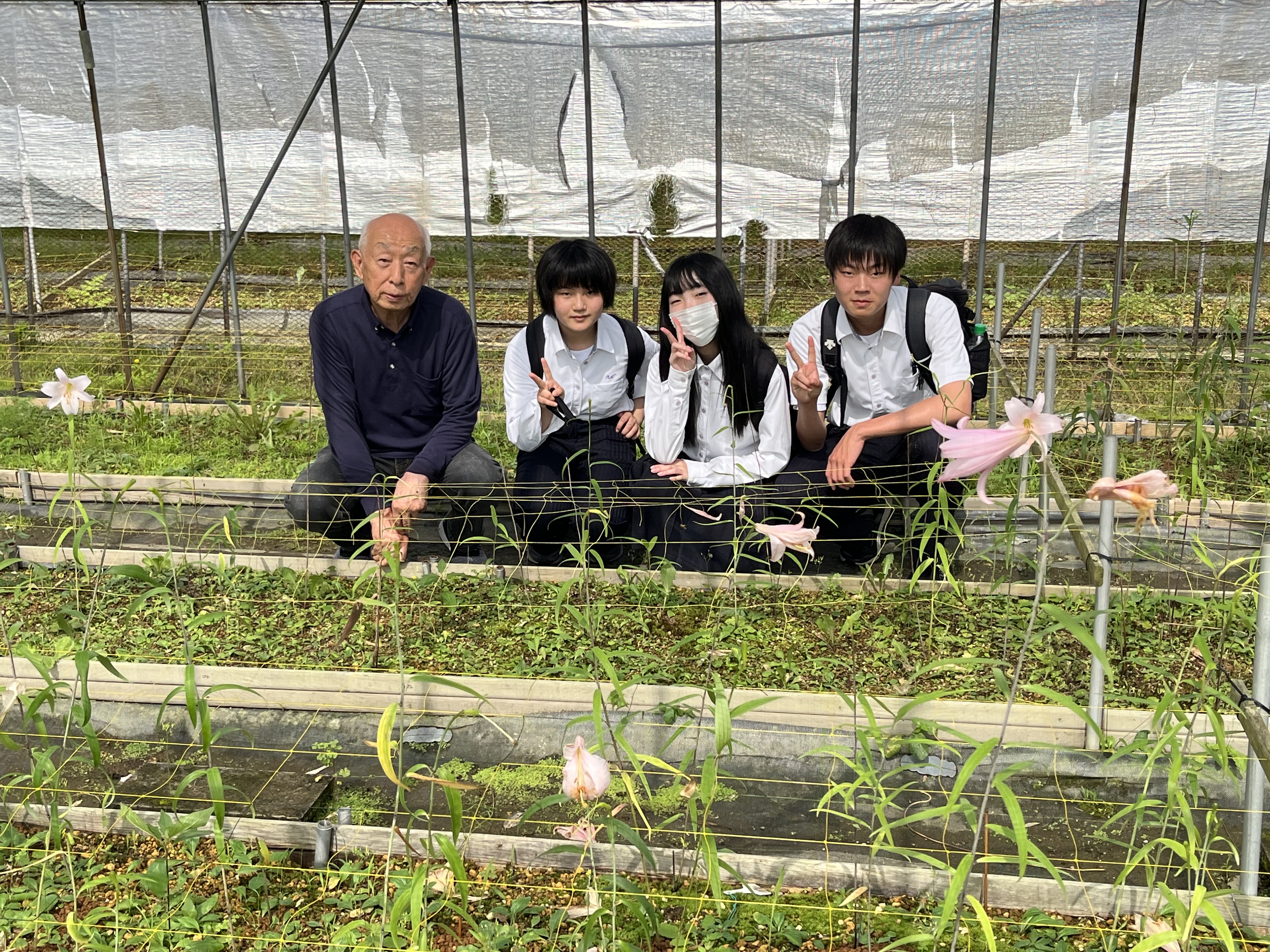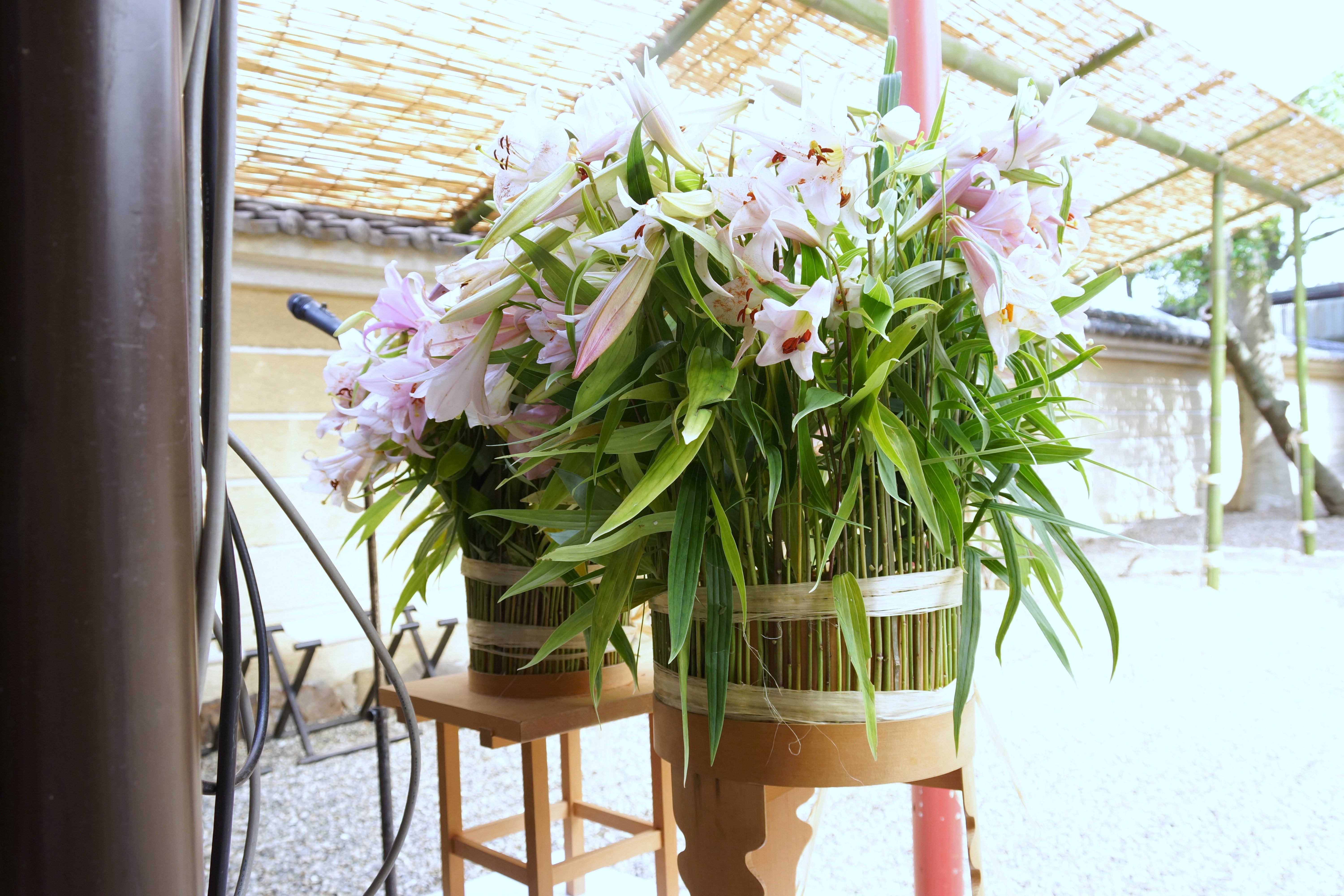 「三枝祭」では、媛蹈鞴五十鈴媛命にお慶びいただくため、御神酒をササユリで飾り、巫女はササユリを手に優雅な神楽を舞い、神社周辺はササユリの優雅な香りに満ちます。使用するササユリは大神神社の神体山である三輪山で準備され毎回400本以上のササユリが必要と知り、神社では保護も進めながら栽培にも積極的に行っていることを荒井滋栽培研究員から教えていただきました。そのためササユリの研究が進んでおり、僕たちが保護活動をしている伊島ササユリ保護に活かせる貴重な体験と研修ができました。いつか伊島のササユリを率川神社の三枝祭に奉納したいです。
