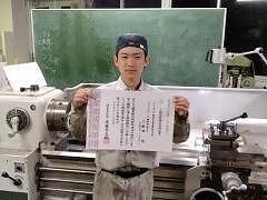 201HRの 新田 煌 が8月26日に国家技能検定3級 機械加工 普通旋盤作業に合格しました。ものづくり部(旋盤) 国家技能検定3級 普通旋盤作業 合格1