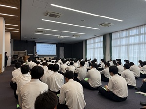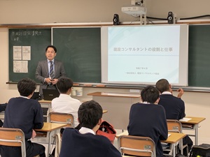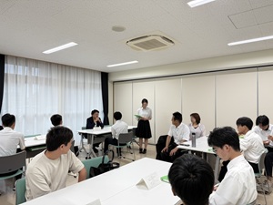 また、講演後は各ホームルーム代表生徒が座談会に参加し、経営者の皆様とテーマに沿った協議や発表、質疑応答が行われ、卒業後の進路について考える貴重な機会となりました。