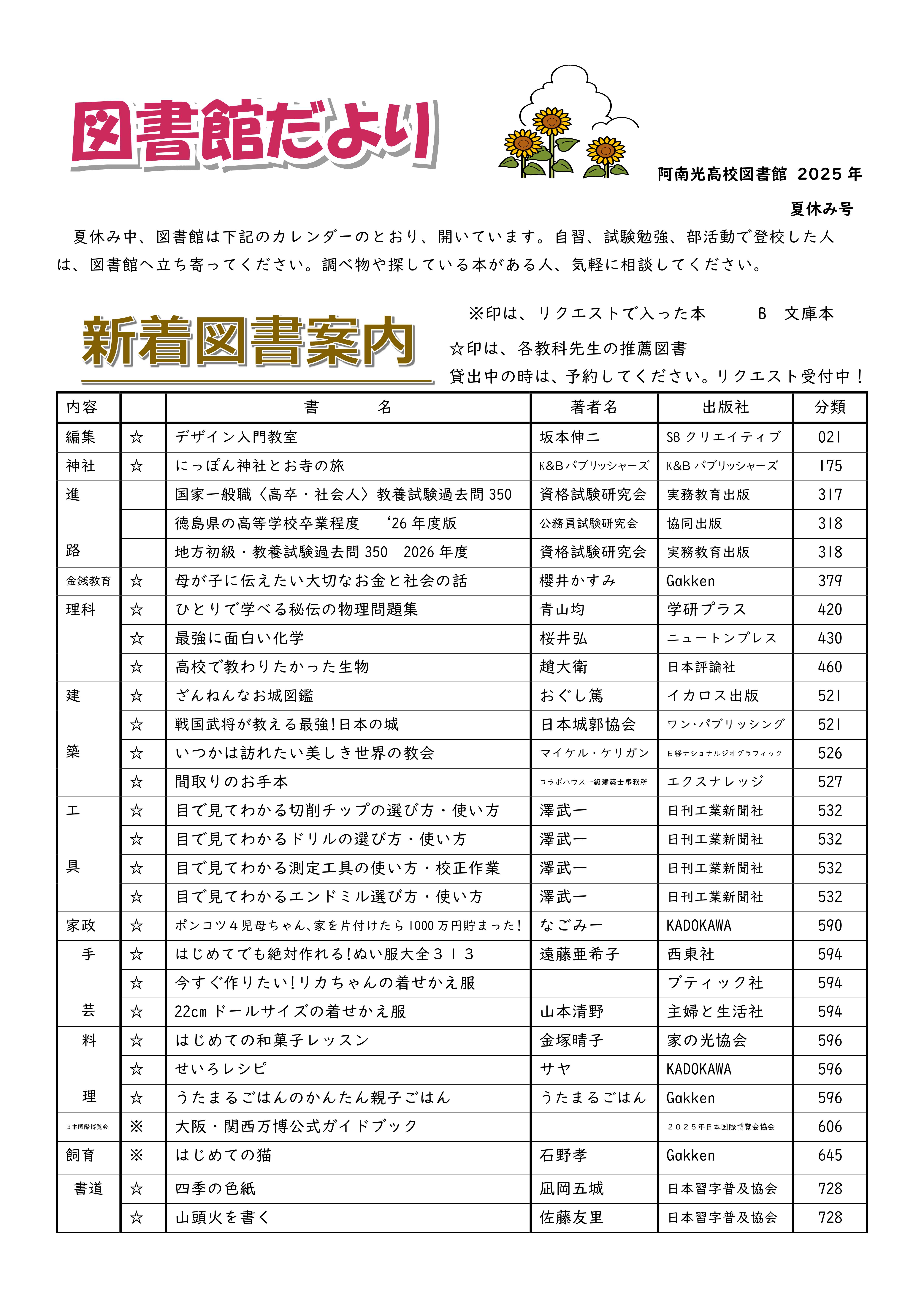 図書館 新着図書 夏休み|